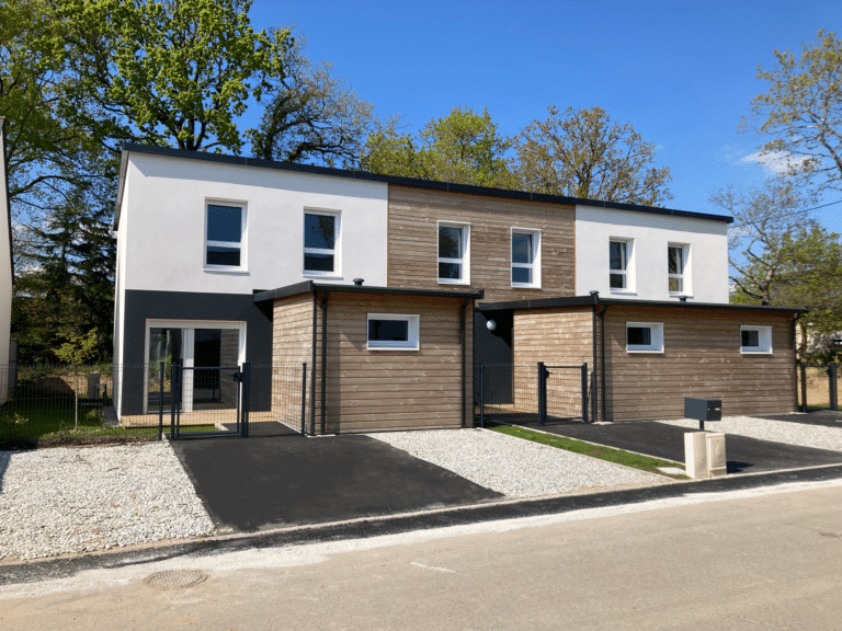 Grâce à la mixité des bardages, bois et enduit mais aussi de la toiture monopente, les maisons bénéficient d’une architecture moderne et élégante. Ces maisons s’insèrent parfaitement dans l’environnement et sont conformes à la RE2020.