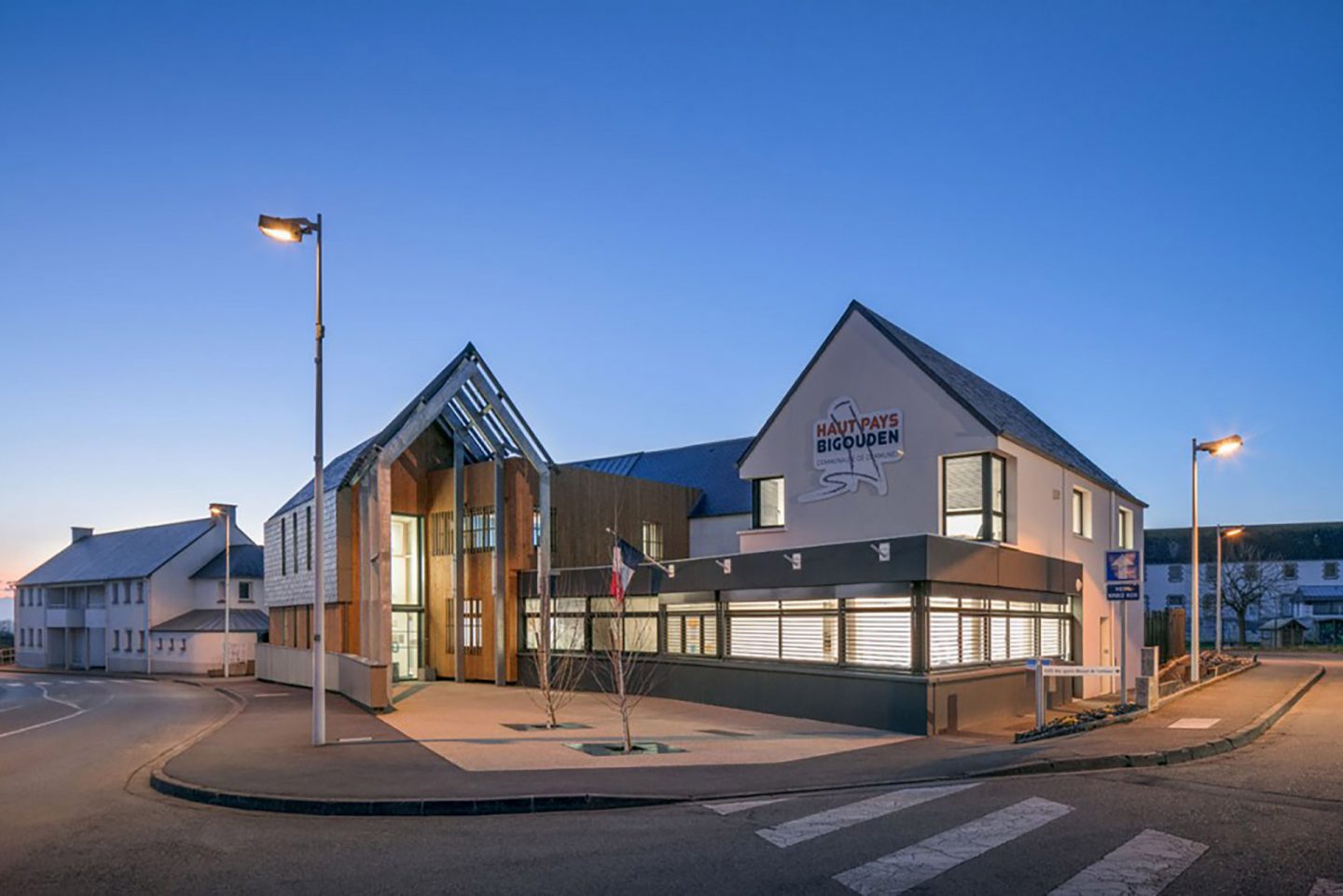 A l’occasion du déménagement de la Communauté de communes du Haut Pays Bigouden, Murébois 29 intervient en tant que sous-traitant de l’entreprise Britton pour livrer cette extension de 890m². Murébois et ses partenaires réalisent une extension et une restructuration d’un ancien bâtiment pour obtenir un résultat unique et un projet aux gros volumes. Les angles et la perspective sont soulignés par l’intégration de matériau bio-sourcés.