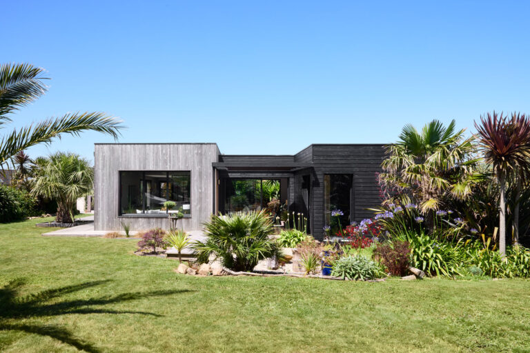 Pour ce projet de maison individuelle situé à Landéda (Finistère), Murébois a assuré la fabrication des murs à ossature bois avec finition bardage depuis son site industriel de Lannilis (29). Commandée par le constructeur Trecobois pour le compte d’un particulier, cette réalisation démontre notre capacité à produire des éléments de structure complexes pour des projets architecturaux sur-mesure.